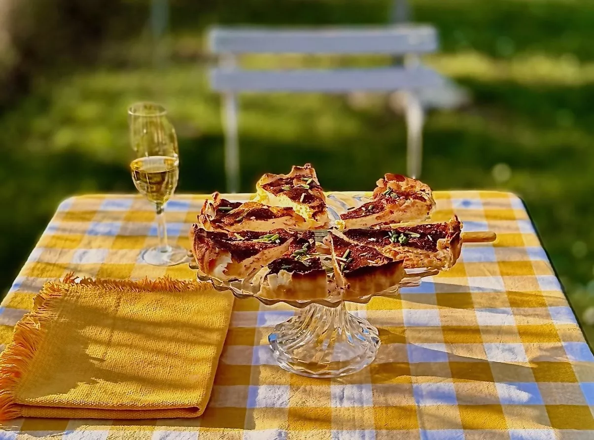 Eine Quiche muss keine komplizierte Sache sein. Die folgende Variante mit Räucherlachs besteht nur aus wenigen Zutaten, schmeckt aber fantastisch – besonders lauwarm. Außerdem macht sie wirklich etwas her! Vor allem dann, wenn sie auf einer schönen Tortenplatte serviert wird.